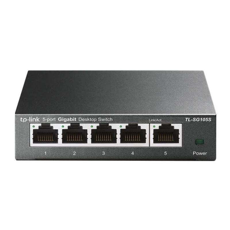 TP-LINK TL-SG105S. Tipo de interruptor: No administrado, Capa del interruptor: L2. Puertos tipo básico de conmutación RJ-45 Ethernet: Gigabit Ethernet (10/100/1000), Cantidad de puertos básicos de conmutación RJ-45 Ethernet: 5. Bidireccional completo (Full duplex). Tabla de direcciones MAC: 2048 entradas, Capacidad de conmutación: 10 Gbit/s. Estándares de red: IEEE 802.1p,IEEE 802.3,IEEE 802.3ab,IEEE 802.3u,IEEE 802.3x. Voltaje de entrada DC: 5 V. Montaje de pared
